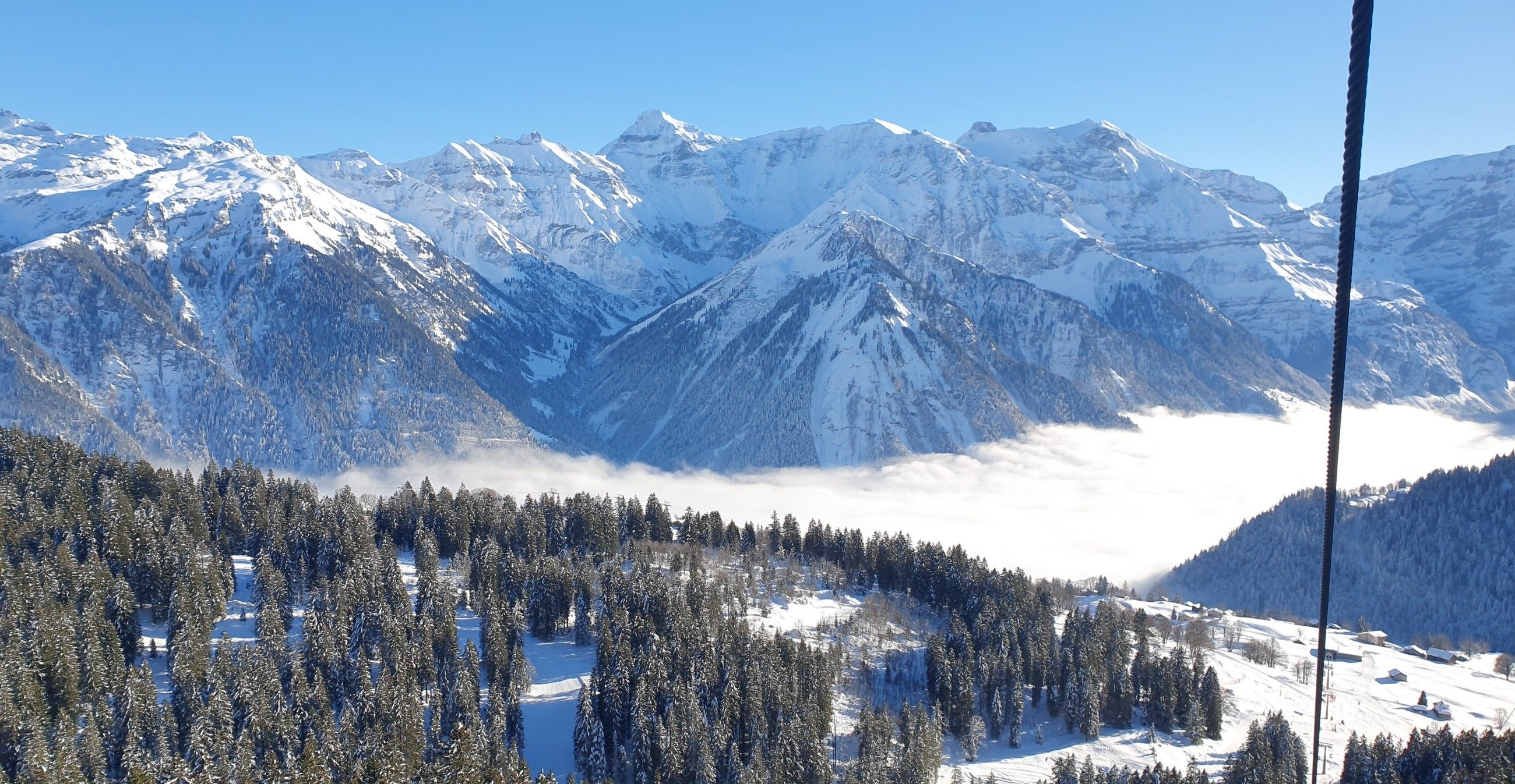 Obwohl es ein perfekter Wintertag mit blauem Himmel, Neuschnee und Nebelmeer war, hatte es sehr wenige Leute auf der Piste. Die Skifahrerinnen und Skifahrer haben die Abfahrten sehr genossen. Sie erzählen, dass es wichtig ist, die Fahrtgeschwindigkeit dem eigenen Können anzupassen, damit man Unfälle vermeiden kann.